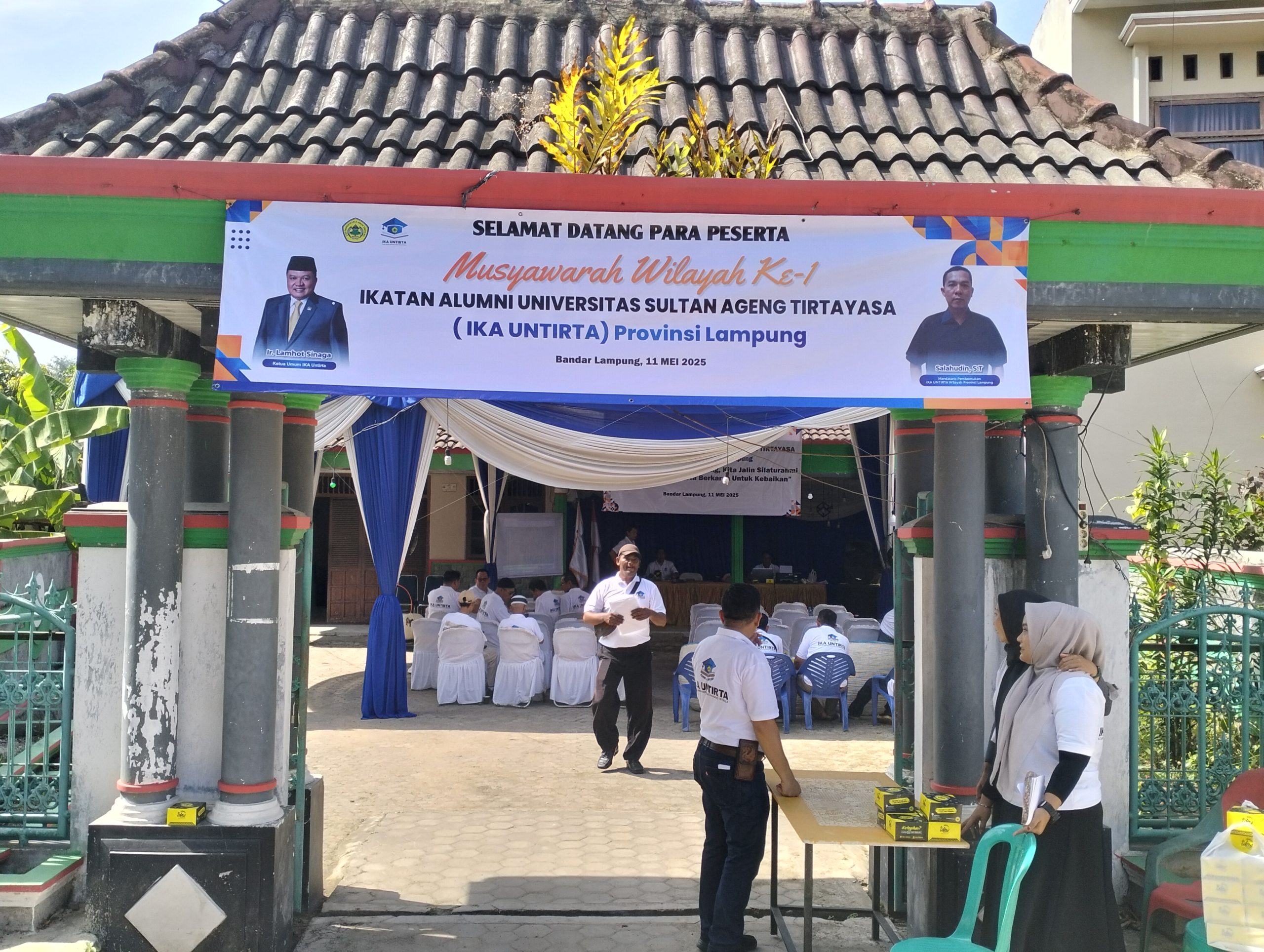 Lampung – ( pandawanews) Musyawarah Wilayah Ikatan Alumni Universitas Sultan Ageng Tirtayasa (Muswil IKA UNTIRTA) Wilayah Lampung resmi digelar dengan mengusung tema “Bersama IKA UNTIRTA Lampung Kita Jalin Silaturahmi, Kebersamaan, dan Berkarya untuk Kebaikan.” Dalam musyawarah tersebut, Mohammad Hatta ST terpilih secara aklamasi sebagai Ketua Umum IKA UNTIRTA Wilayah Lampung periode 2025–2030.