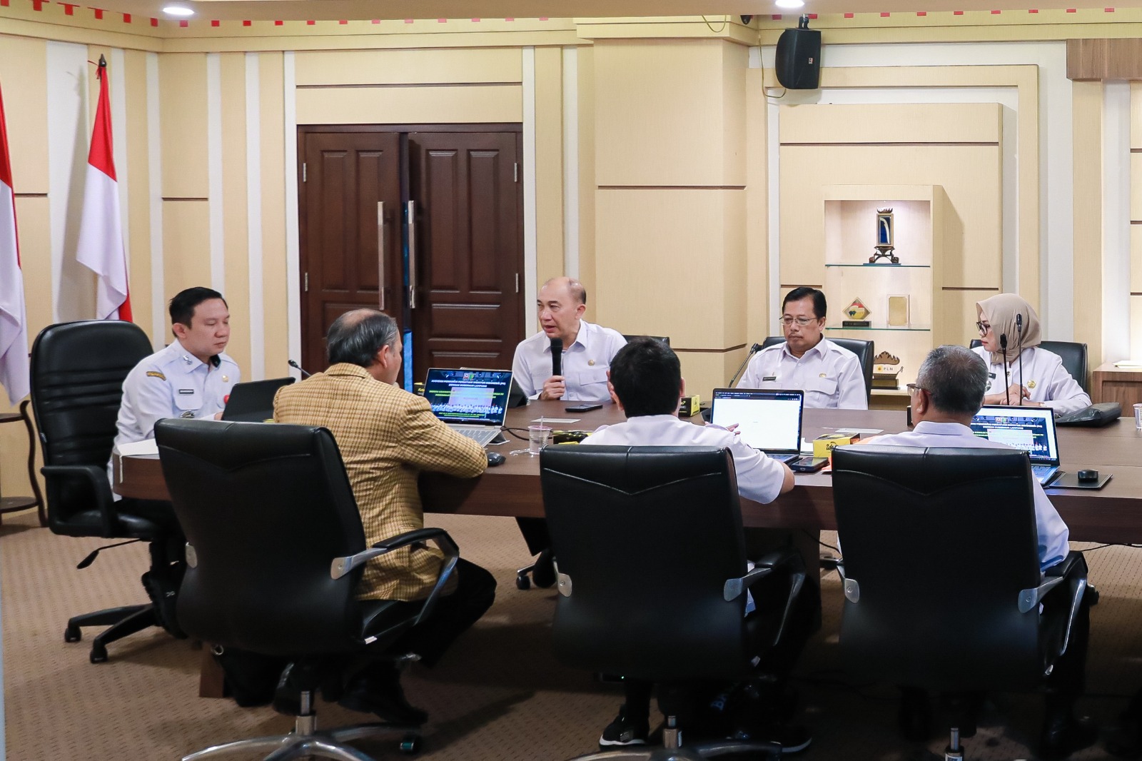 LAMPUNG — Sekretaris Daerah Provinsi Lampung, Marindo Kurniawan, menerima kunjungan kerja Persatuan Insinyur Indonesia (PII) di Ruang Rapat Sakai Sambayan, Kantor Gubernur Lampung, Rabu (10/12/2025). Pertemuan ini turut melibatkan Asisten Perekonomian dan Pembangunan, Staf Ahli Gubernur Bidang Ekonomi, Keuangan, dan Pembangunan, sejumlah kepala OPD, serta Ketua PII Wilayah Lampung.