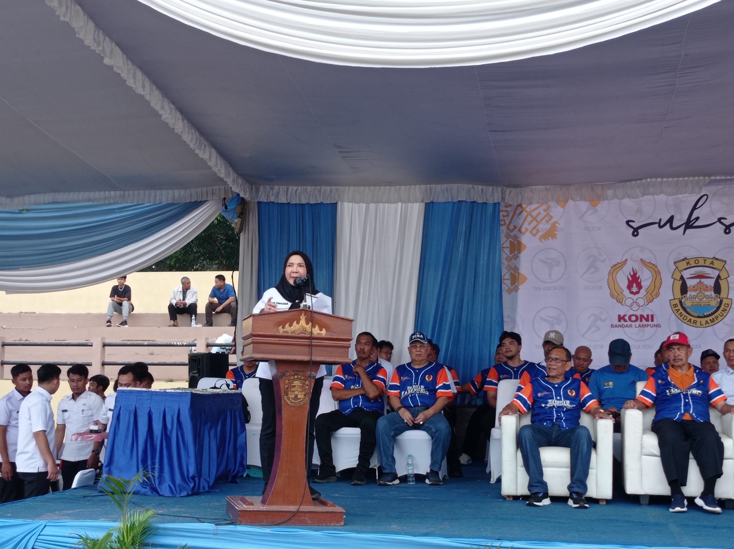 BANDAR LAMPUNG – Semangat para atlet Kota Tapis Berseri kian membara! Dalam momen pembukaan Pekan Olahraga Kota (Porkot) di Lapangan Kalpataru, Rabu (24/12/2025), Wali Kota Bandar Lampung Eva Dwiana atau yang akrab disapa Bunda Eva, memberikan motivasi sekaligus janji manis.