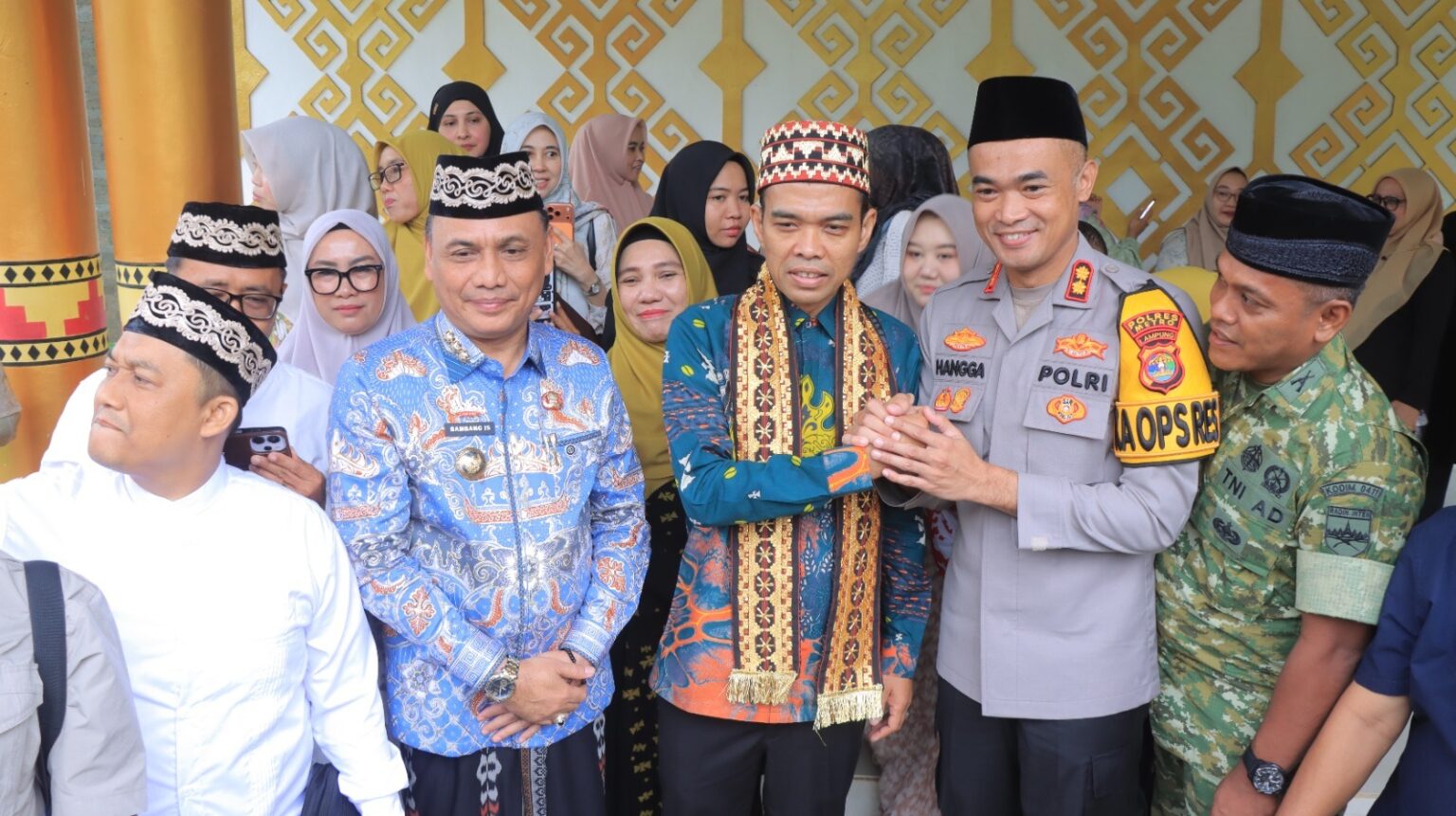Kapolres Metro, AKBP Hangga Utama Darmawan, turut menyambut langsung kedatangan Ustadz Abdul Somad di Rumah Dinas Wali Kota Metro sebagai bentuk sinergitas dan dukungan terhadap kegiatan keagamaan yang disambut antusias oleh masyarakat.